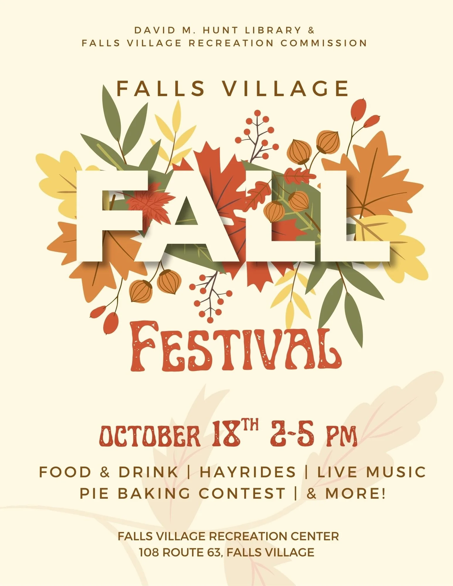 Comida y bebida, música en directo, paseos en carro, concurso de tartas, ¡y mucho más! Pásate por el Festival de Otoño de Falls Village y visita la mesa del Proyecto SAGE durante tu alegría estacional.